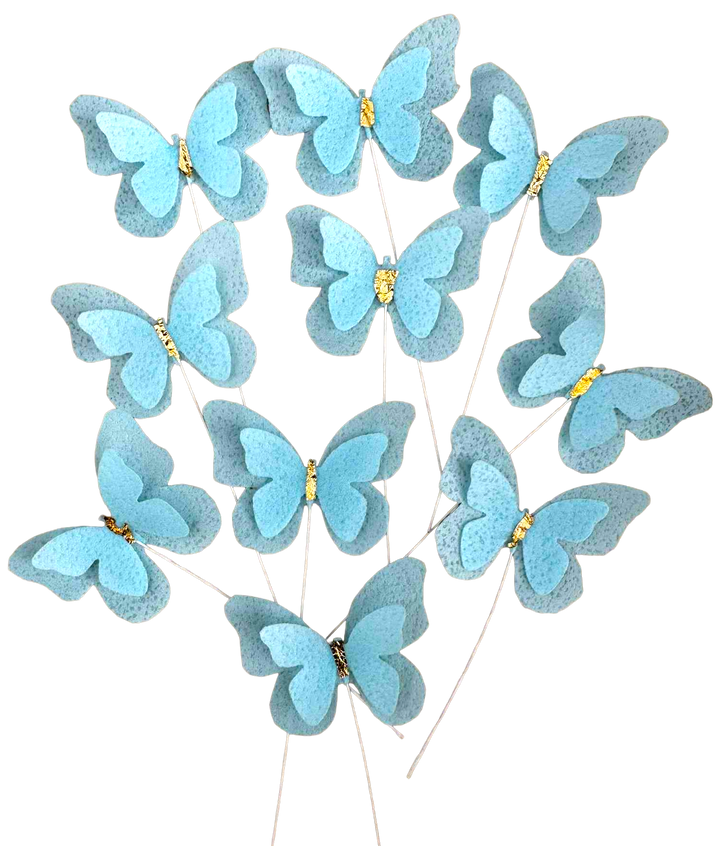 Set 10 decoratiuni comestibile din vafa, Fluturi bleu
