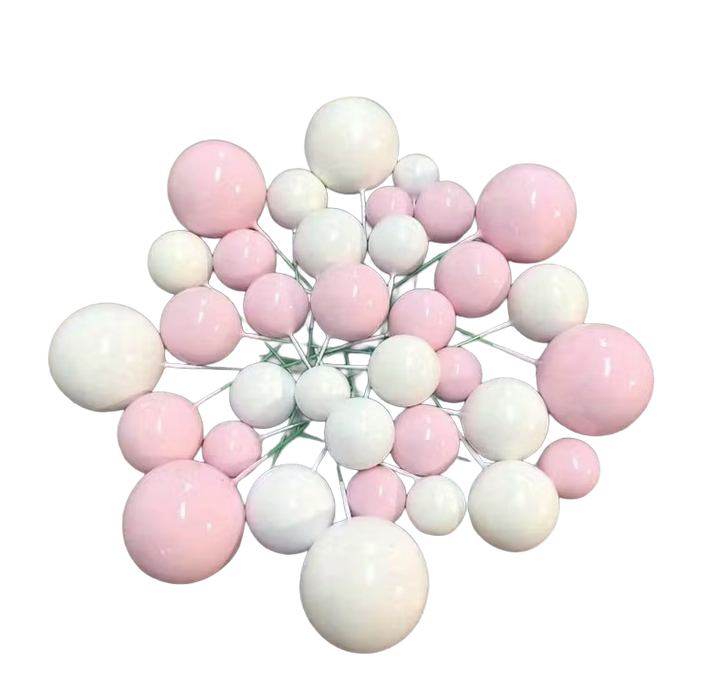 Set 27 Plastové koule pro ozdobené koláče - růžová - bílá