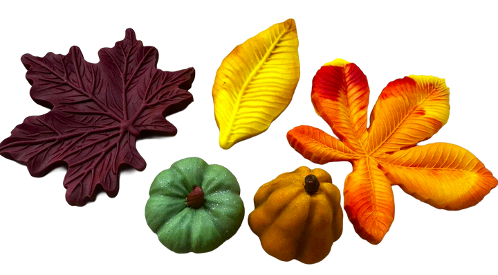 Sada obsahuje 5 dekorací vyrobených ručně z cukrové pasty s rozměry mezi 2,5 cm a 9 cm