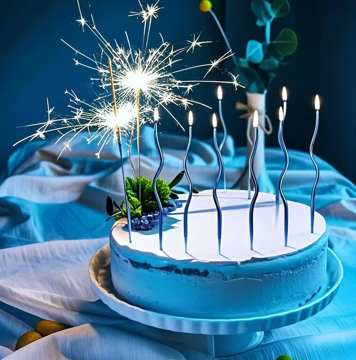 Set 6 Lumanari pentru Tort, Ondulate, Lungi, 12 cm, Albastru